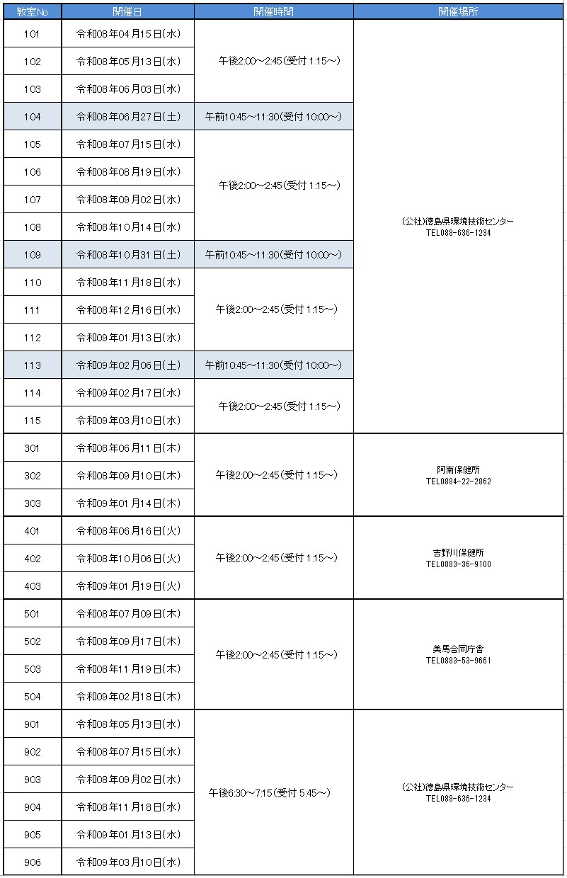 開催機関の(公社)徳島県環境技術センターまでご連絡下さい。